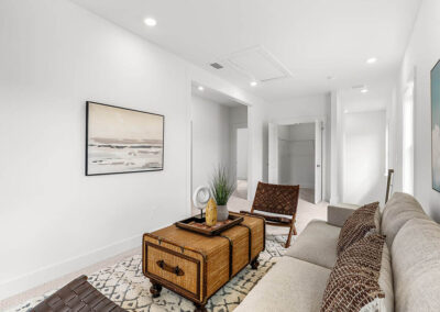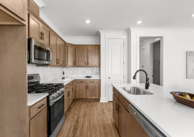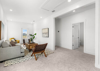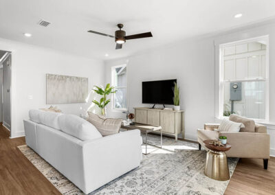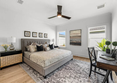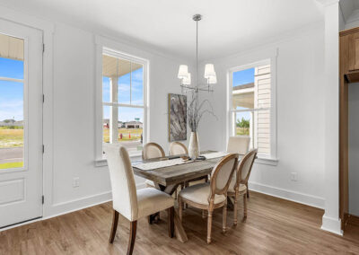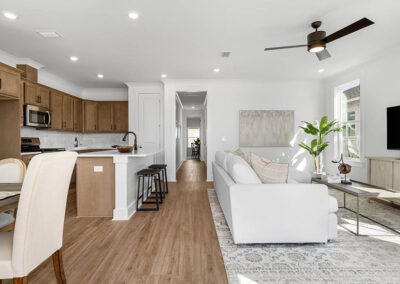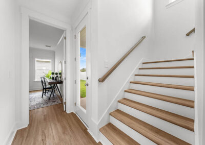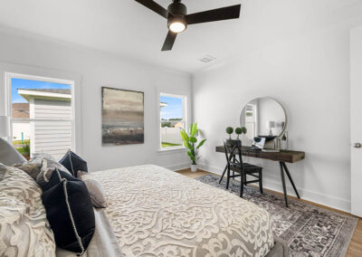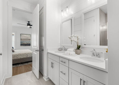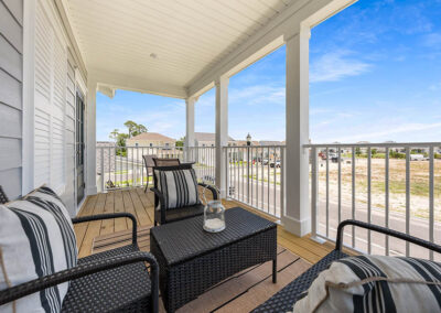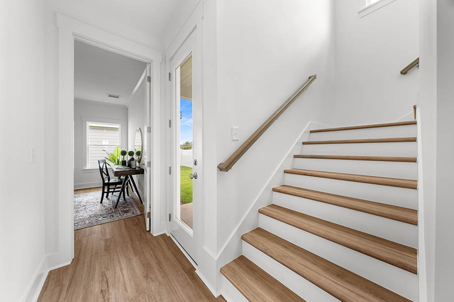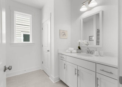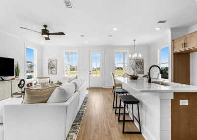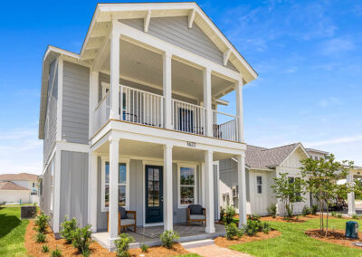 The Iva plan by Harris Doyle Homes is offered in Indigo Lakes. The main level offers an open great room, dining area and eat-in island kitchen with stainless appliances, stone countertops and tile backsplash all included. The primary suite is tucked away for privacy and includes a spacious bath with tile-to-ceiling shower, dual vanities and a large walk-in closet. The laundry, located near the primary suite, offers additional storage space. The home’s upstairs features two ample bedrooms plus a loft. The loft for conversion into a fourth bedroom with a third full bath. The Iva includes a two-car carport in the Cottages and a two-car garage in Indigo Lakes (optional in the Cottages). Select home sites may also accommodate an optional 2.5-car carport with storage or even a 3-car garage. The Iva has exterior options that include a balcony on the front of the home and multiple sizes of rear covered patios.